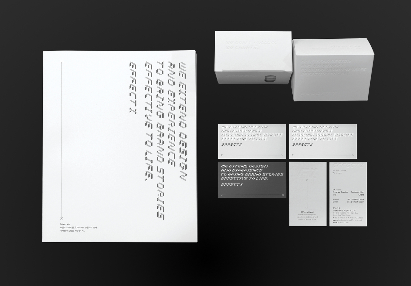 This typeface is created based on cognitive science theories under Effect X's ‘Extend Visual Through Design’ methodology. Taking a 3D cube as a hexahedron that can be divided into six equilateral triangles, it forms a grid that is further developed by adopting a precise pattern composed of equilateral triangles. An illusion typeface is thus achieved that has the depth of space and precise connectivity. Finally, by tweaking the saturation, a mystic illusion font is in effect when seen from two angles—from the upper left and lower right. Red Dot Award: Design Concept | Ready to Launch | Communication