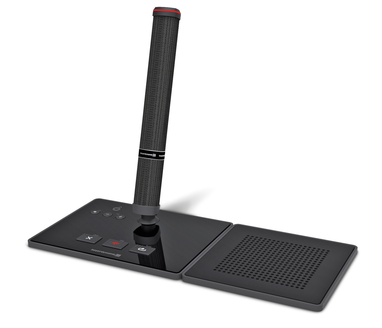 The Orbis conference system scores points with a clear, formal language. The flat microphone units with separate speaker module as well as the small dimensioned central controls are reduced to essentials, their functions defined by form, position and size. Installation of the system in high-quality interiors is simplified by a particularly flat construction and rounded corners. Thanks to a standardised XLR port, different types of microphones can be connected.