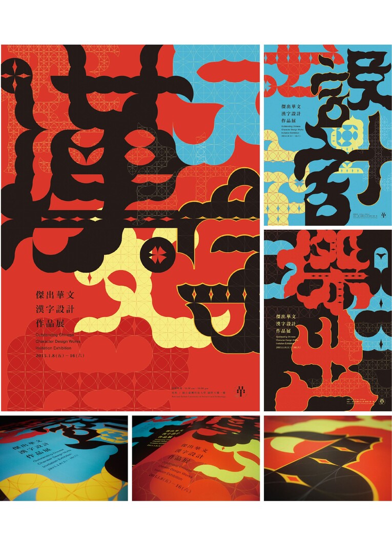 These extremely colourful posters are entitled “Outstanding Chinese Character Design Works Invitation Exhibition”. Their design takes a grid system used in contemporary graphic design and applies it to traditional Chinese calligraphy. In an attempt to discover the hidden potential of Chinese character design, traditional art and modern graphic design have been fused, resulting in a mix of Eastern and Western culture that allows Chinese calligraphy to emerge from a well-ordered yet rigid grid system and impresses viewers with the beauty of this tension.