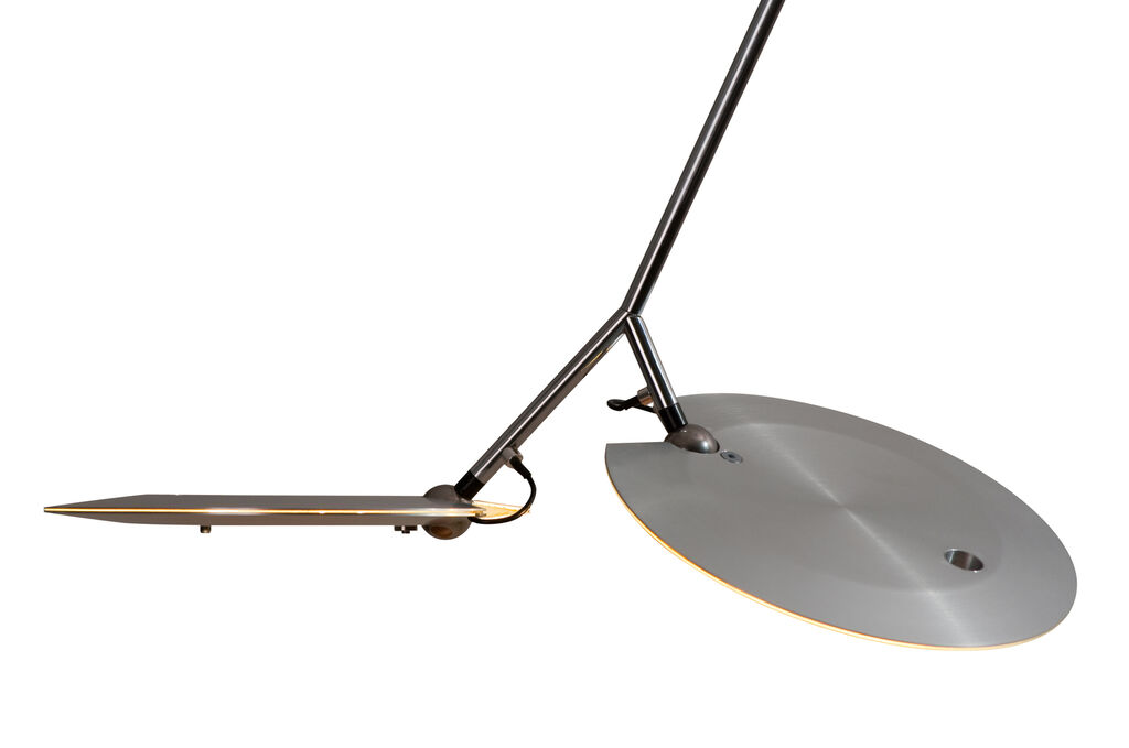 The characteristic design element of the OyO LED light system, consisting of floor, ceiling and wall lamps, are its two disc-shaped aluminium reflectors with luminous frame. The bar is telescopically extendable and branches into a Y-shape near the reflectors – the lamp is thus reminiscent of the branch of a plant with movable leaves. The OyO technically convinces with its ball joints and the current-carrying telescope, which conceals the power supply. The latest-generation LEDs guarantee a maximum of energy efficiency and are designed for long-term use.