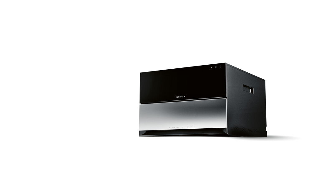 The P10S Pro is a multifunctional station for cleaning robots. With its height of 27.8 cm and box shape, it can be integrated like a built-in piece of furniture. After the lifting door is automatically opened, the autonomous cleaning robot can be driven all the way in. Inside, its dust chamber is then emptied quietly, dirty water is exchanged, and the mop is sterilised. Its minimalist, no-handle front made of black crystal glass and matt metal gives the station a high-quality look and feel and blends harmoniously into sophisticated interiors.