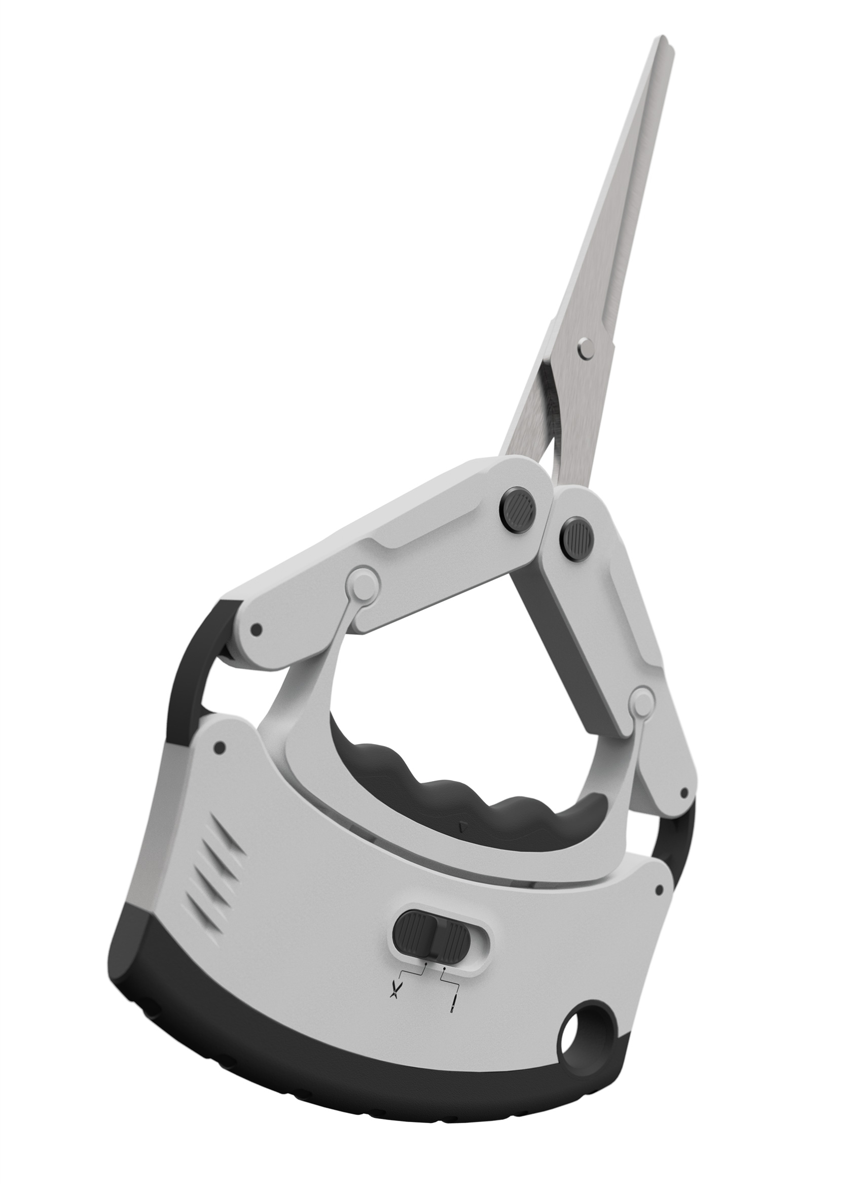 Palmello is an adaptive scissors operated by palm pressure, designed for individuals with arthritis and reduced fine motor skills. Traditional scissor designs require repetitive finger movements, a bent wrist, and curling of the fingers while gripping the handle or loop, which can potentially cause musculoskeletal issues. These challenges often hinder individuals with hand-related issues from using scissors for everyday tasks. Recognising this, Palmello introduces a new interaction method and ergonomic design aimed at enhancing usability for all users. Palmello operates like a hand gripper, requiring a simple squeezing action to actuate the blades. The inclusion of flexure hinges provides a spring action, ensuring that the blades open automatically when the handle is released. The handle mechanism is ambidextrous and helps maintain a neutral wrist position during cutting. Safety is ensured with a blade-locking mechanism that features a sliding button to lock the blades when not in use. Palmello seamlessly combines distinctive aesthetics with functionality, embodying the principles of human-centred design. Red Dot Award: Design Concept | Red Dot: Next Gen Award | Concept | Ageing and Geriatrics