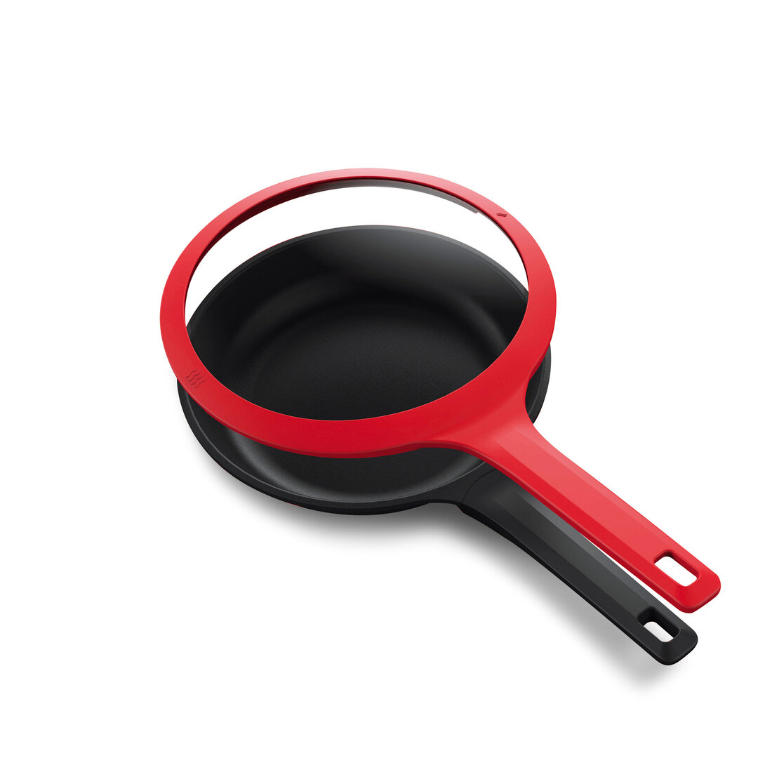 This frying pan is a newly designed product made of a granite-containing material, which makes the pan particularly durable and easier to clean. The lid features a red signal colour, which makes sure that it stands out against the black corpus of the pan. The panoramic roof curvature allows not only to observe the food inside, a convenient feature, but also serves as a splatter guard. An integrated fine-mesh strainer in combination with a coarse strainer pouring system facilitate the draining of liquids.