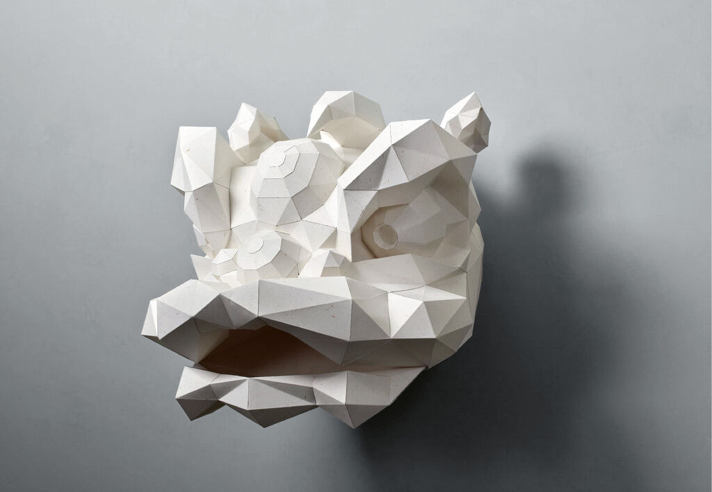 Lion Dance is a traditional Chinese dance in which performers move about in a lion costume to bring good luck and fortune. “Paper Lion” refers to this ancient custom by introducing innovative paper art. Each craft kit contains instructions on how to assemble the head of a paper lion from a few sheets of white paper. The nuanced design of the finished objects skilfully reflects the lines, the surfaces and the shapes of their three-dimensional models. Featuring white, natural material, the paper sculptures also emphasise the beauty and purity of the Lion Dance art.