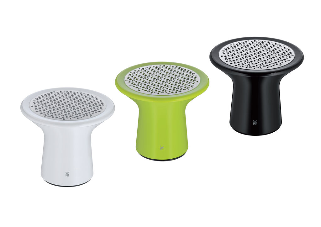 The parmesan grater combines high functionality with stylish design. Due to the material mix of high quality Cromargan® and up-market plastic in the fashionable colours of white, green and black, it is an eye-catcher.