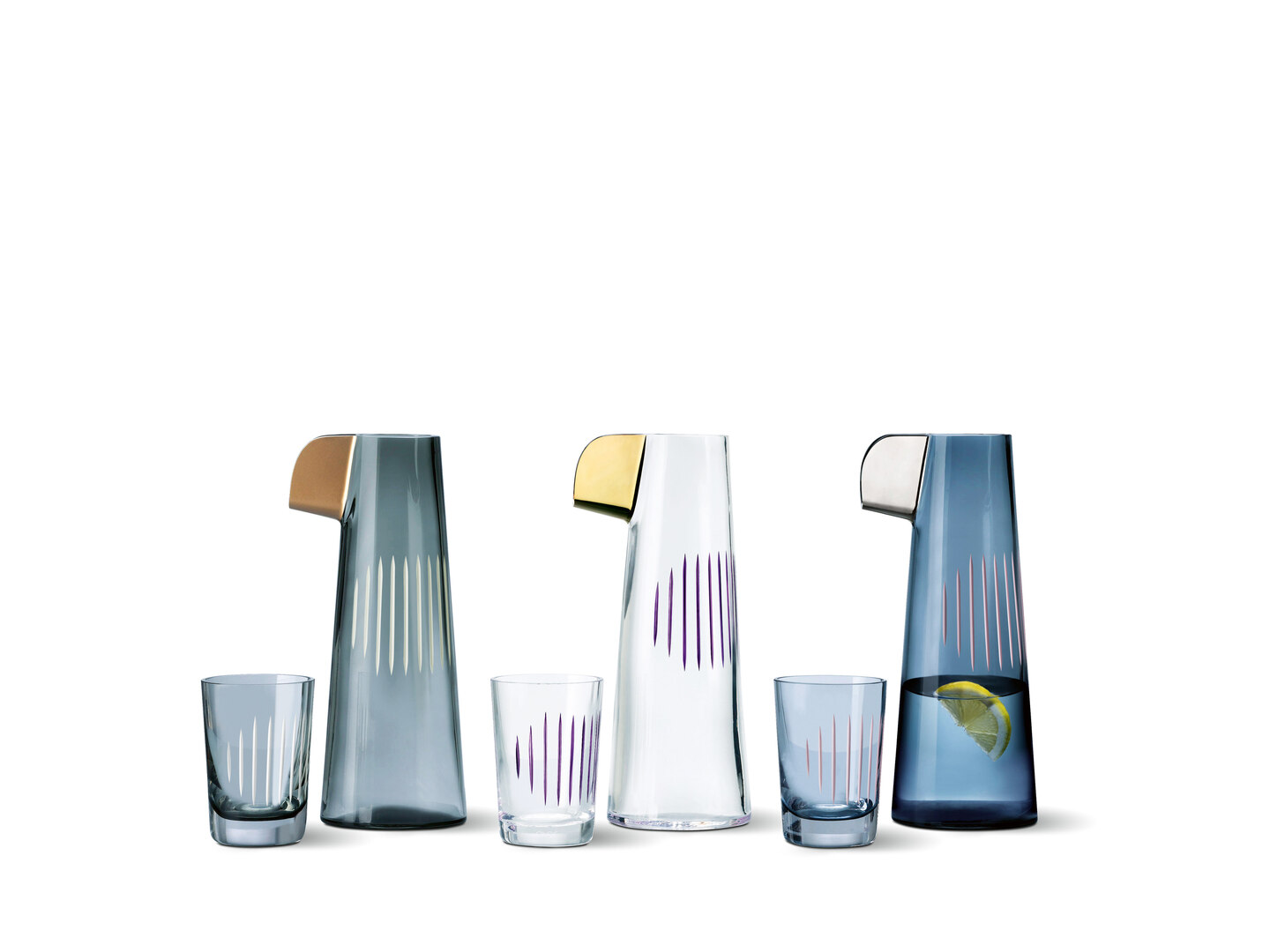 The Parrot glass collection comprises a carafe and a matching water glass, both available in three different colour nuances which are inspired by nature. The large, beak-shaped spout is distinctively set off in all versions. Vertical, colour-accentuated engravings on the sides underline the playful appearance of the collection while additionally ensuring a firm grip. The collection is hand blown and hand coloured.