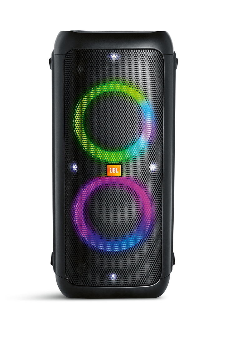 The PartyBoxes 100 and 300 were designed to fill parties with sound, be it a small gathering at home or a larger celebration. The speakers are equipped with LEDs that light up in the rhythm of the music. They have a rechargeable battery, and the PartyBox 300 addi­tionally includes a 12 volt DC input for the cigarette lighter socket in vehicles. A guitar or microphone can also be connected and amplified by the speaker, and it is possible to interconnect multiple devices.