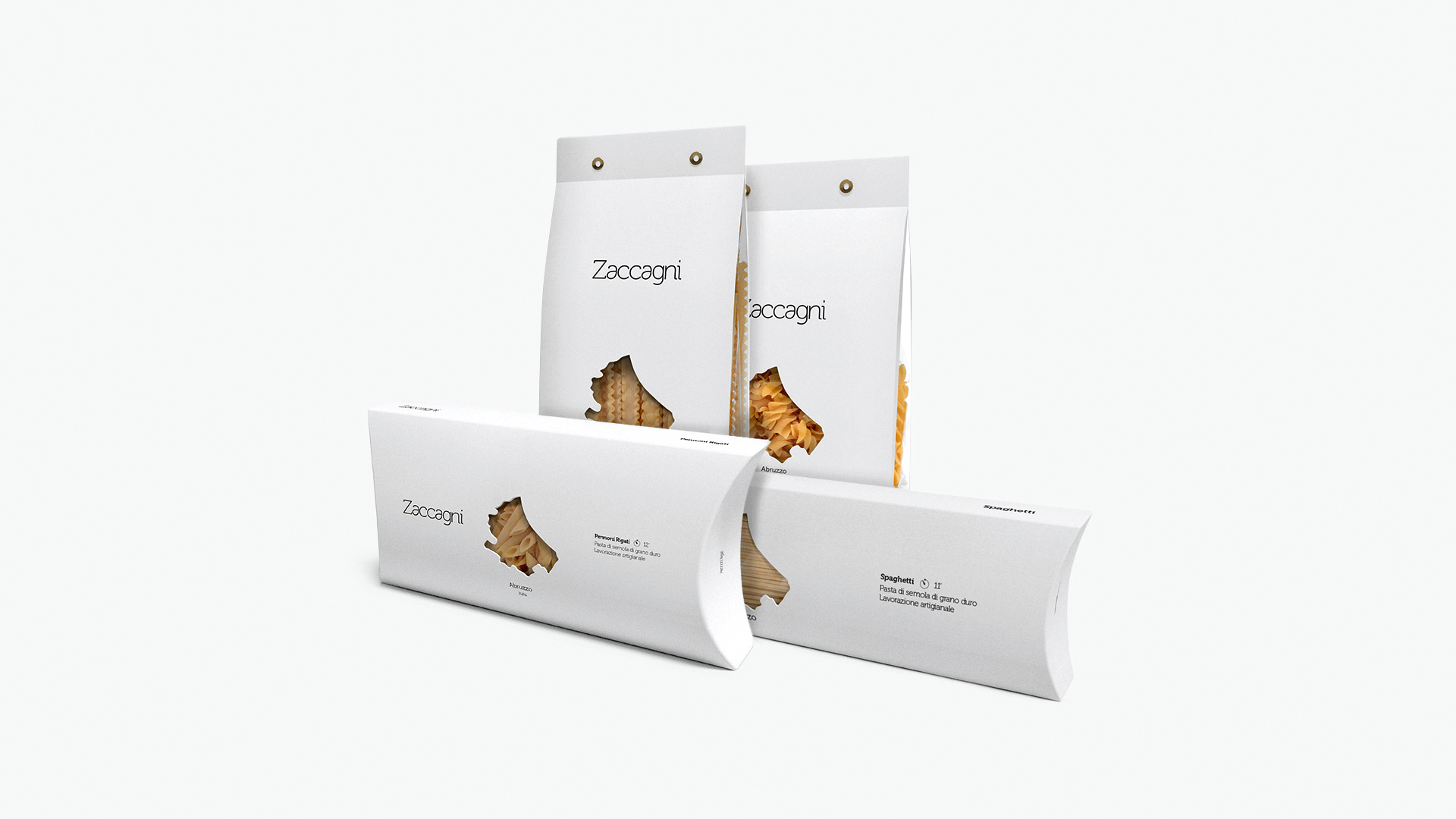 The development of the packaging for Pasta Zaccagni centred on the objective of creating a new identity that communicates the high quality of the pasta and positions it as a premium product on the world market. Standing out against the new white packaging is a window designed in the shape of the Abruzzo region. Complemented by an innovatively shaped box, the entire concept aims at highlighting the strong vocation of pasta in that region. The packaging is meant to be representative of the whole story of the brand, which combines many different experiences and cultures.