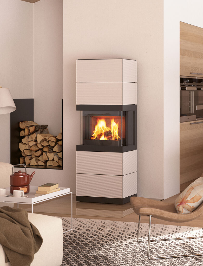 Thanks to self-regulating control technology, the PATNA iQ stove allows for efficient, low-emission heating with wood. To achieve this, a sensor analyses the temperature in the combustion chamber, while a microcontroller evaluates the data and regulates the flow of air into the stove via automated ventilation flaps. In addition, combustion can be easily controlled via an app. The jury was delighted “by the contemporary control system and the sustainable effectiveness of the stove”. Handmade ceramic with a ribbed texture encase the cube-shaped stove body, which is also available with smooth ceramic or soapstone cladding. The wide firebox can be viewed from three sides.