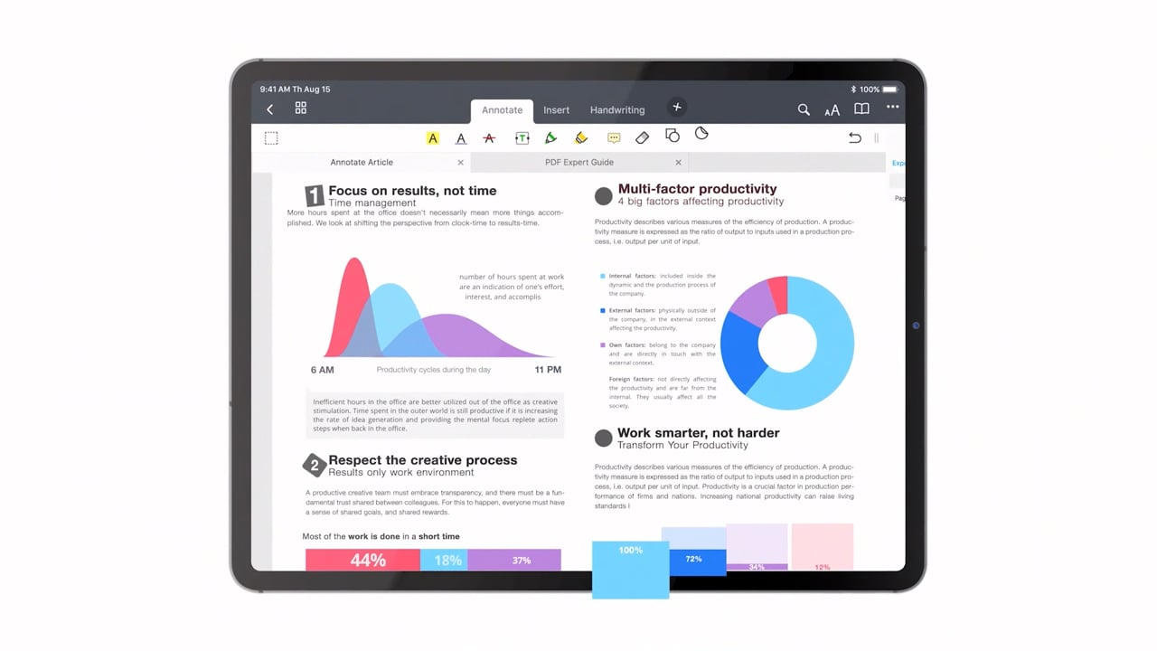 PDF Expert is a tool for Apple devices that is used for editing, annotating, signing and organising PDFs. The application and the file manager work hand in hand to perform actions quickly and switch smoothly between tasks.