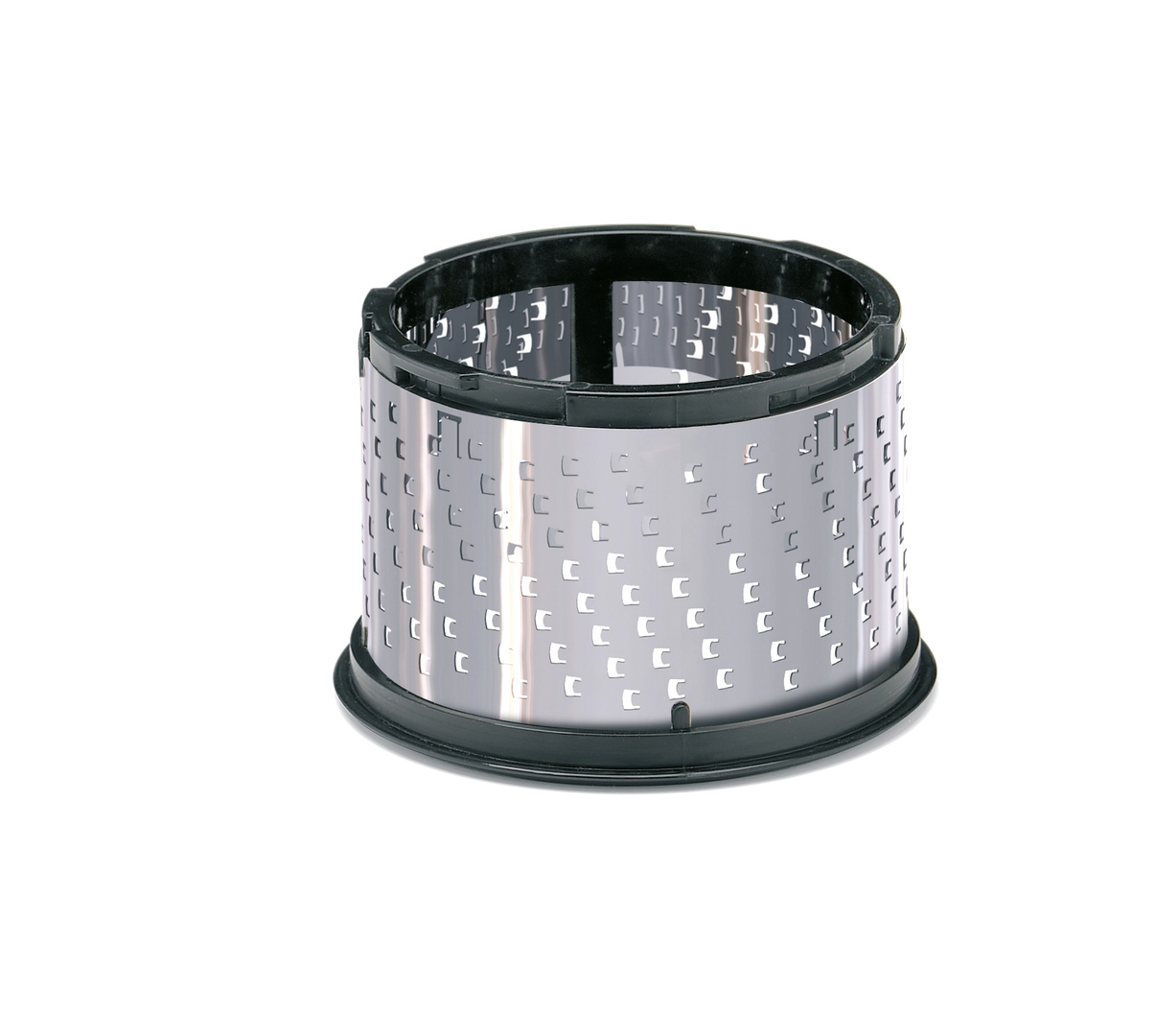 With two interchangeable laser cut grating drums, this rotary grater is suitable for many applications: Hard cheese, nuts or cooking chocolate can be put into the hopper. As soon as the smooth-running crank is actuated, the food is grated until the respective consistency is as desired. The product set includes a coarse and a fine drum, which can be easily inserted into the compact case, made of stainless steel and plastic. Furthermore, the transparent container is expedient; it is tightly attached to the grater and takes up coarse or fine food. Remaining in the container, Parmesan, for example, is ready to be served. After use, the grater can be disassembled quickly and it is also easy to clean in the dishwasher.