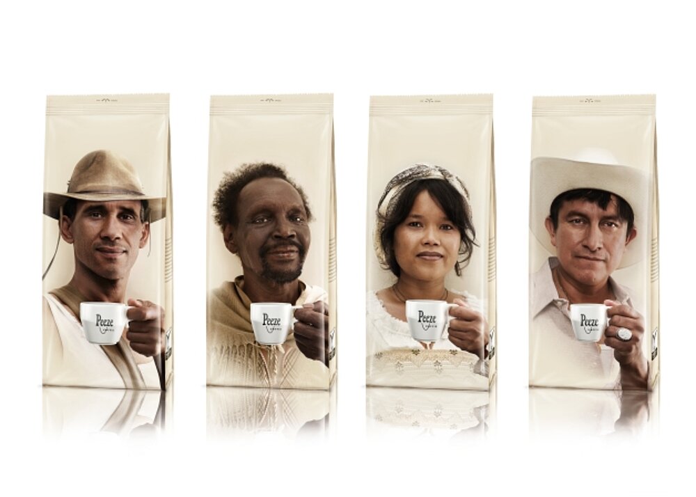 This coffee brand’s high standards in quality and sustainability were the main focus of its packaging design. The front of the packet features large portraits of proud farmers from the coffee’s country of origin. Each farmer is holding a branded coffee cup in their hands, which allowed the designers to do away with an additionally placed logo. The friendly key visuals enable easier differentiation of the four different product types while at the same time doing justice to the human side of coffee trading.