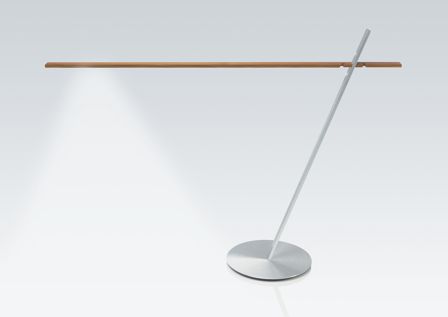 The Pegacasa P-005 table lamp merges traditional Taiwanese handicraft with modern cutting-edge technology. Its aesthetics are defined mainly by the traditional tenon joint that serves as a connector system. The lamp is assembled by simply inserting the wooden tenon of one module into the slot of the other. And when the two modules are disassembled, the lamp can also be used as a portable unit. The light-bearing module is made of carbonised bamboo to underline the lamp’s natural appeal, in contrast to the stand, which is made of fine aluminium. The ultra-slim LED module convinces with its low power consumption and wide-field lighting.