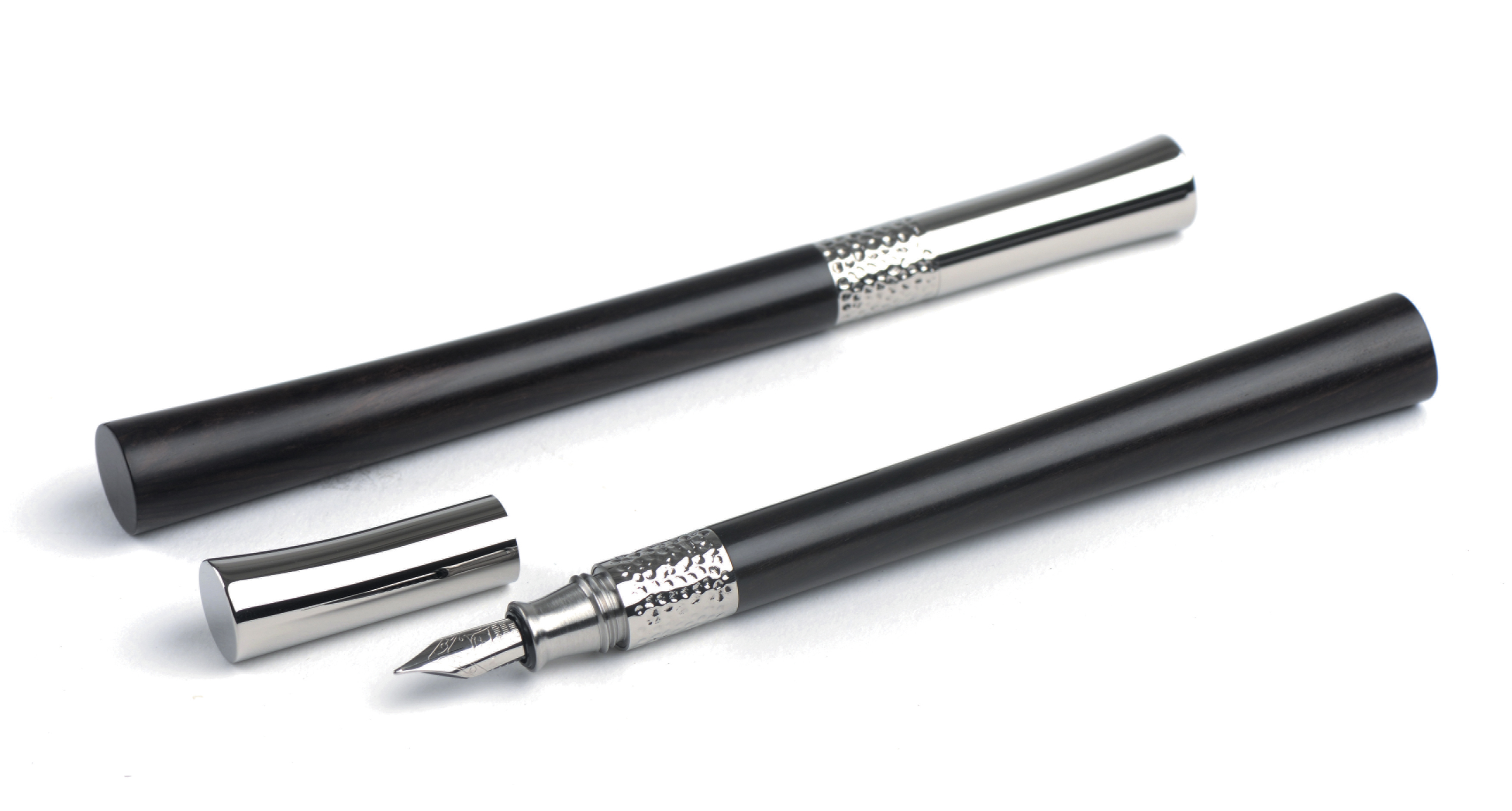 This is a fountain pen that has a unique, asymetrical, cylindrical pen body that improves comfort of writing. To achieve a sleek and simplified aesthetic, the pen clip (traditionally attached to pens) is removed. Instead, this is replaced with a leather pen bag. Hardwood is chosen as a material for the pen body, while titanium alloy is used for the pen cap and pen holder. Titanium alloy has better durability and resistance to corrosion, which is perfect for everyday use. However, using titanium alloy means that there are some production problems that need to be resolved. For example, to process the wooden pen rod, the water content of the wood must be at 6 % - 11 % to cope with the difference of temperature and humidity in different regions. This ensures that the pen stick does not crack and bend easily with use. German Schmidt is used for the writing system, chosen because it is one of the top manufacturers of pen writing systems in the world. With this, good writing experience is guaranteed for the users.