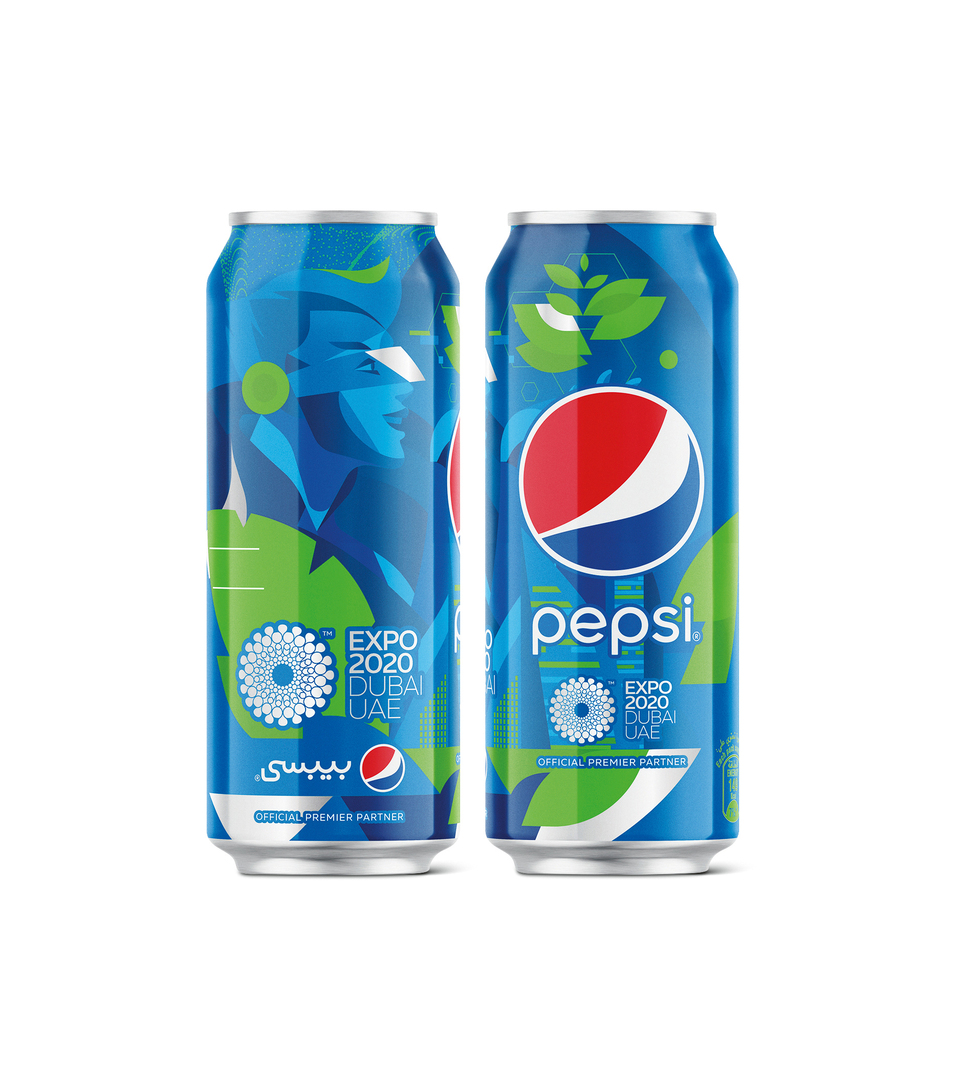 The special edition “Pepsi x EXPO 2020” shows in three different variations how the themes of opportunity, mobility and sustainability come together. Each topic is allocated a vibrant colour. The abstract design centres around a stylised figure which has deliberately been kept flat in order to encourage open-ended thought and imagination. The design reflects how the future can look very different from one person to another. Each of the three themes also tells a unique story based on different cultures, experiences and backgrounds.