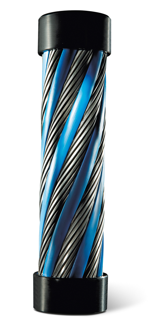 The Performa-DT stranded wire rope has been developed especially for the whisper-quiet operation of urban cableways. To achieve this, the rope features plastic profiles between the strands. These profiles fill the surrounding circular area almost entirely, separate the strands from each other spatially and stabilise them in their position. Thanks to the smooth surface structure the rope runs practically without vibration and noiselessly across rollers and sheaves.