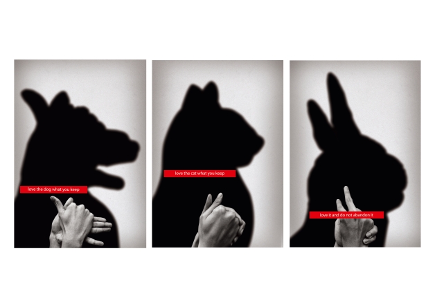 The Pet Shadow posters represent the relationship of pet owners with their pets by applying semiotics based on simple shadow figures performed with hands. They highlight the fact that many people purchase pets solely because they are cute. As soon as those pets become inconvenient, they often give them away or even abandon them. The design shows man and animal in a relationship in which the animals become shadows. It refers to the responsibility men bear for their pets and calls on them to love their pets and to take care of them.