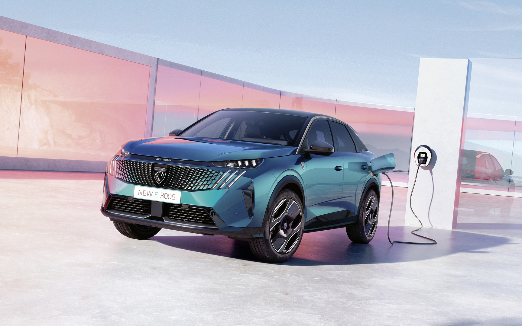 With its dynamic shape, the new PEUGEOT E-3008 fastback SUV combines elegance, efficiency and spaciousness. The interior impresses with a striking, seemingly floating 21" panoramic screen, which includes important functions of the PEUGEOT i-Cockpit and displays them clearly. The technological character of the interior is emphasised by LED ambient lighting and aluminium elements. Produced using environmentally friendly materials, the PEUGEOT E-3008 offers a range of up to 700 km with short charging times.
