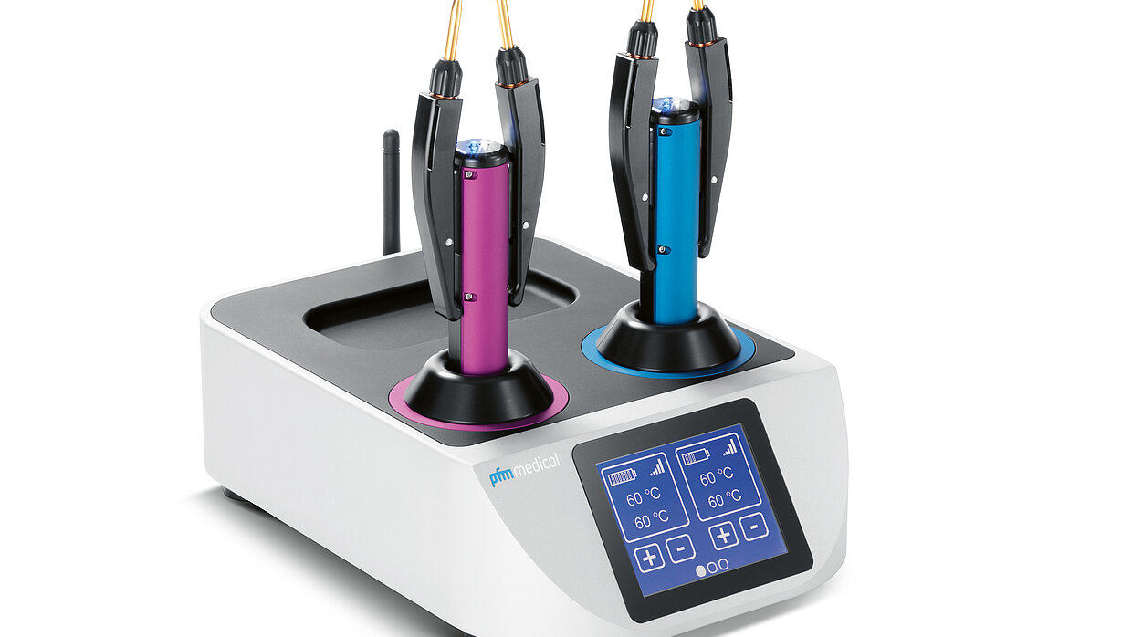 The innovative wireless electronic forceps are optimised for the safe transfer and alignment of tissue samples during embedding in histological laboratories. The pfm Forceps EWF 600 consists of a base station and two wireless forceps with interchangeable tips. For charging, the forceps are placed in the base station. Temperature data is transmitted wirelessly via Bluetooth, controlled on a touchscreen and continuously monitored, thus facilitating workflow in laboratories.