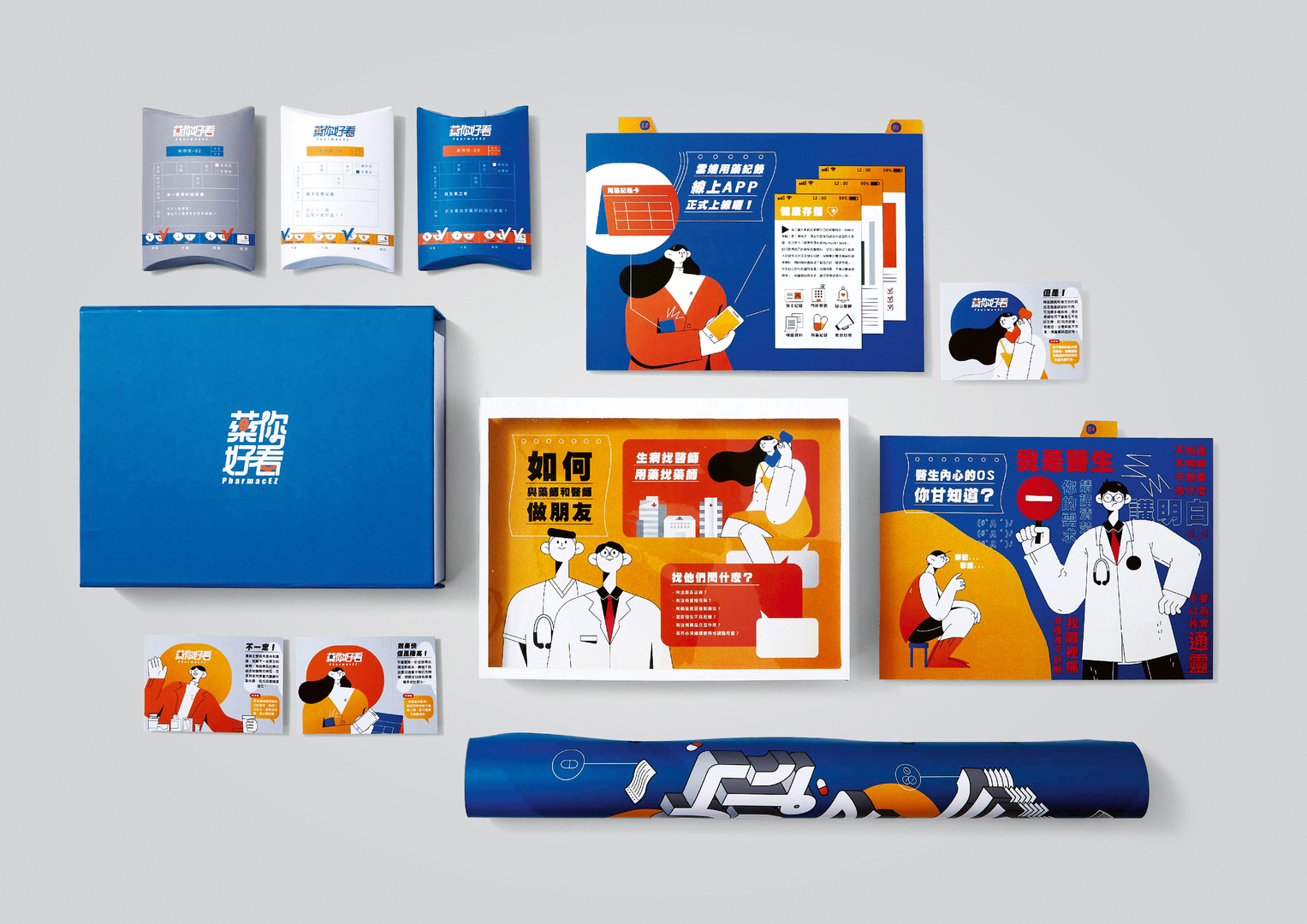 The student project PharmacEZ focuses on the topic of medication and the task of designing information about taking medication in an easy-to-understand and motivating manner. With the objective to make patients’ attitudes as positive as possible, the design integrates simplified infotexts into an appealing image world. Bold colours accentuate the original illustration style and clearly highlight the most important information. In addition to advertising materials for use in pharmacies, the social campaign also includes a promotion on social media channels.