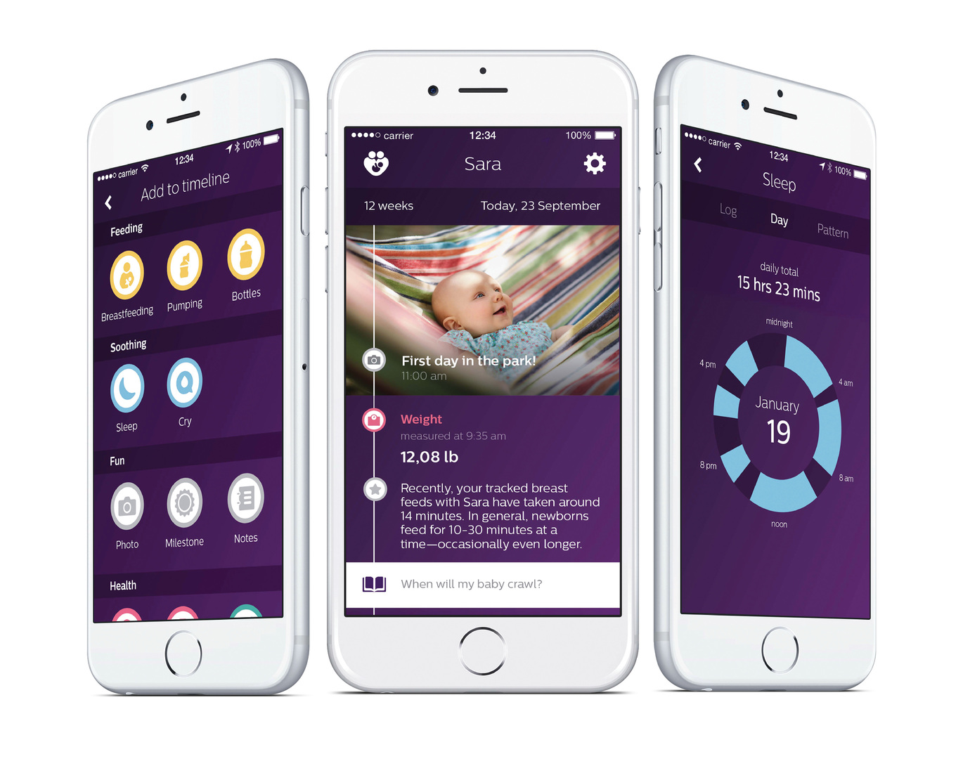 Philips Avent uGrow is a parenting app for the mobile generation who turns to the smartphone first for advice. Medically certified, the app securely collects data through connected devices, e.g. the smart baby monitor or thermometer. By analysing feeding and sleeping patterns, parents can track possible problems and share these with their paediatrician. As well as reassuring new parents by visualising complex data, memorable moments can be captured through photos and stickers then saved to a simple timeline that will grow alongside with the baby.