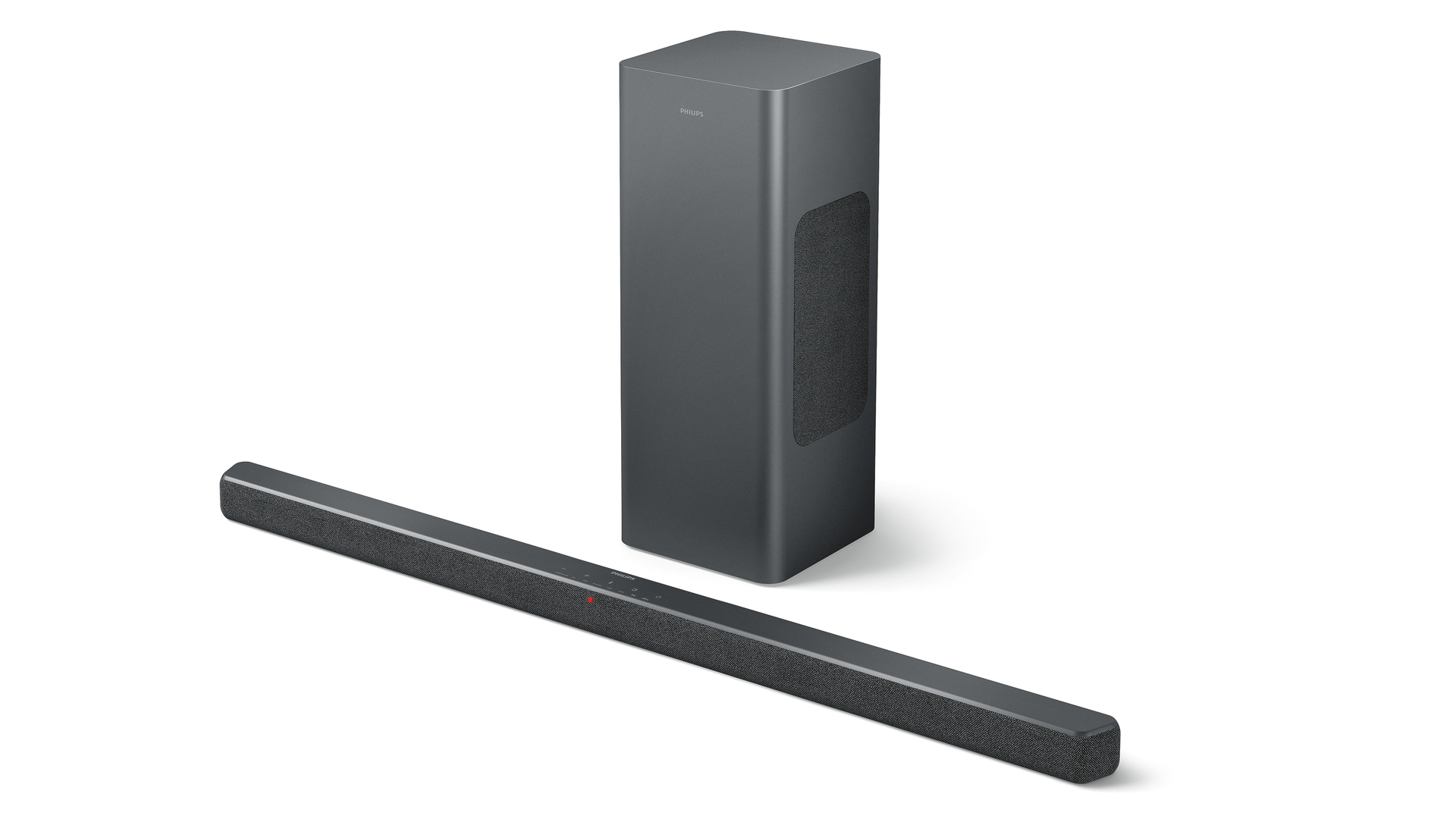 With its subtle design and compact dimensions, the Philips B6309 soundbar, along with its subwoofer, integrates excellently into modern living interiors.