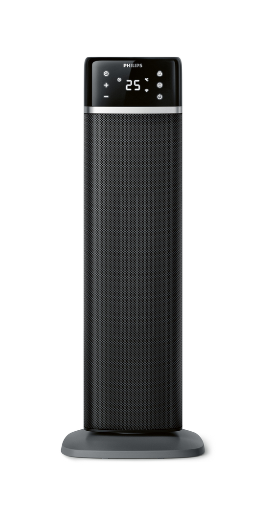 The Philips 5000 series ceramic fan heater is a compact and elegant heating tower designed with aesthetics and functionality in mind. With its minimalist, contemporary design, it blends seamlessly into the interior without attracting too much attention. It has a soft trapezoidal shape that emphasises its elegant appearance. This heater emphasises energy efficiency, which is becoming increasingly important due to rising energy costs.