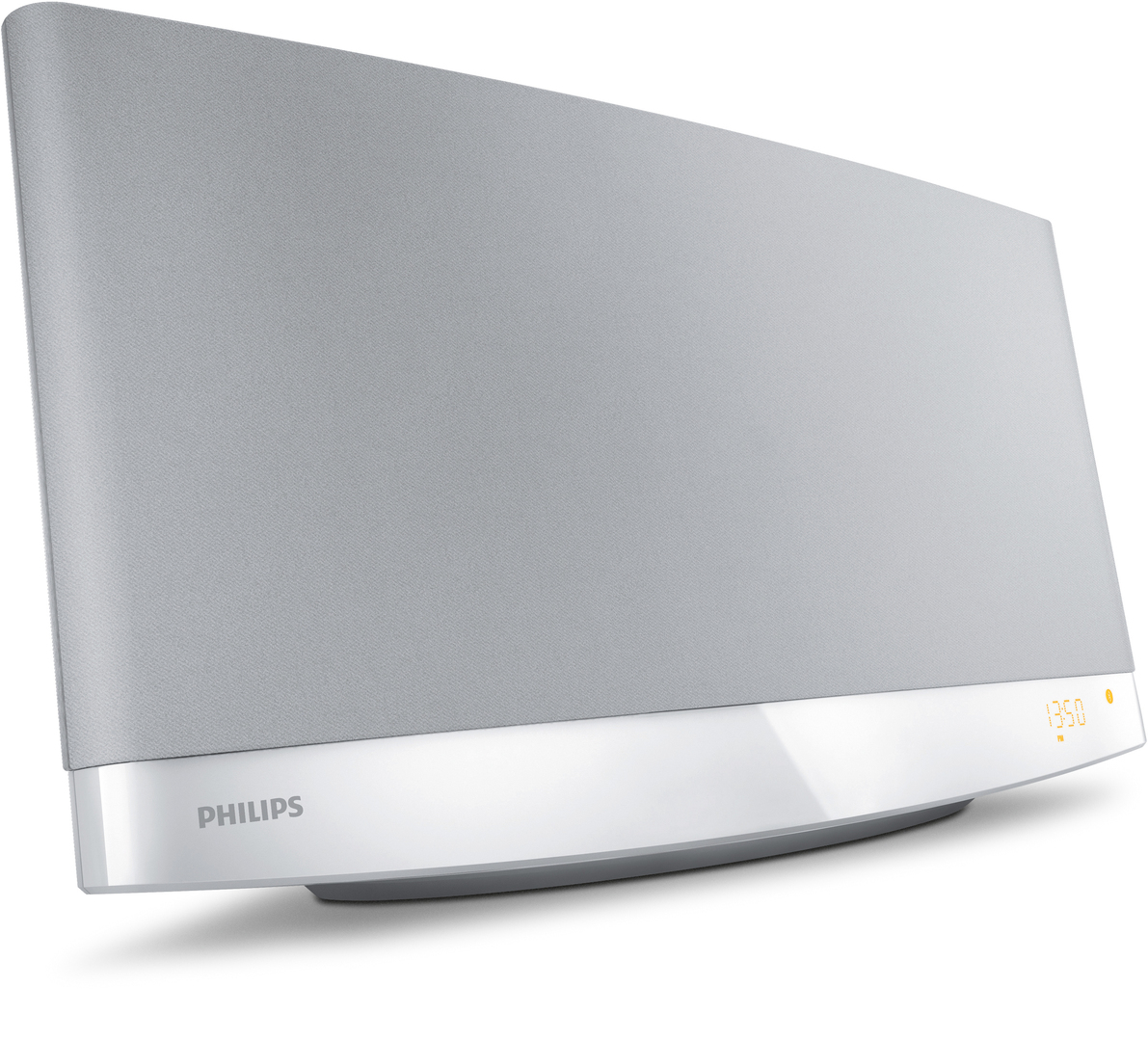 This all-in-one stereo system can be placed on a shelf or mounted to a wall. Its slim shape is space-saving and thus ideal for rooms with limited wall space. With its elegant modern design and use of soft fabrics, the stereo integrates well into any home interior. All controls and the CD slot are concentrated in one area so that the casing wraps entirely around the system, fostering a seamless appearance.