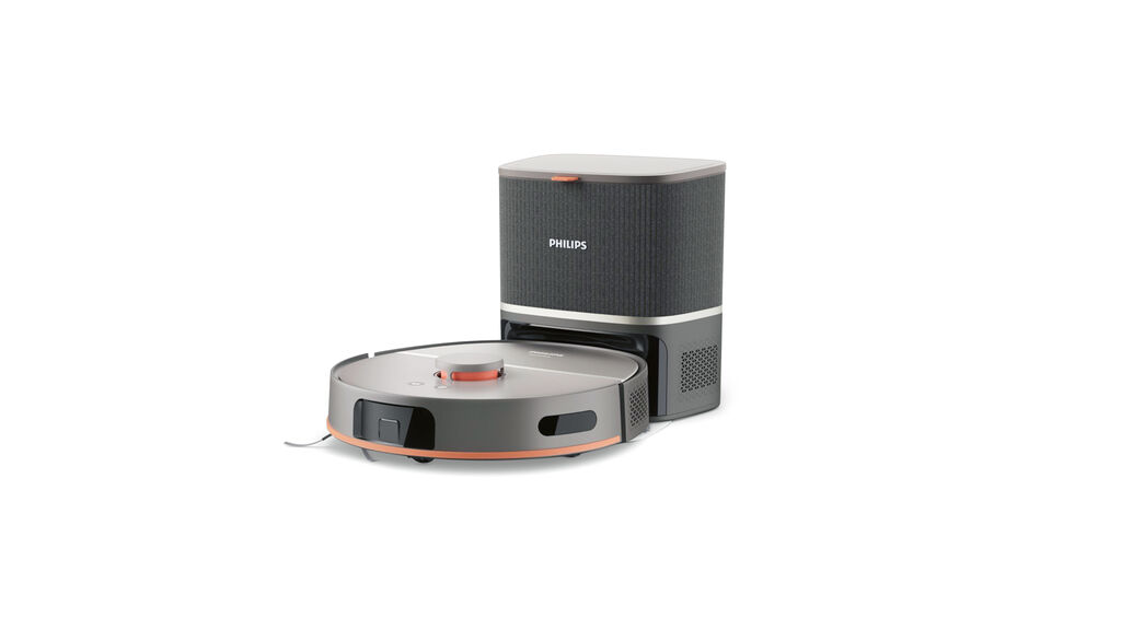 The Philips Homerun 5000 Series of robot cleaners combines advanced cleaning technology with a design that suits any living space. The compact station with a textile surface and PU leather handle integrates harmoniously into modern interiors. The station has a dust collection function and offers hygienic disposal. Thanks to dual rotating mops and the slightly trapezoidal housing, thorough cleaning is achieved, and the magnetically attached mop holder makes maintenance easier. Control via app offers flexible cleaning settings.