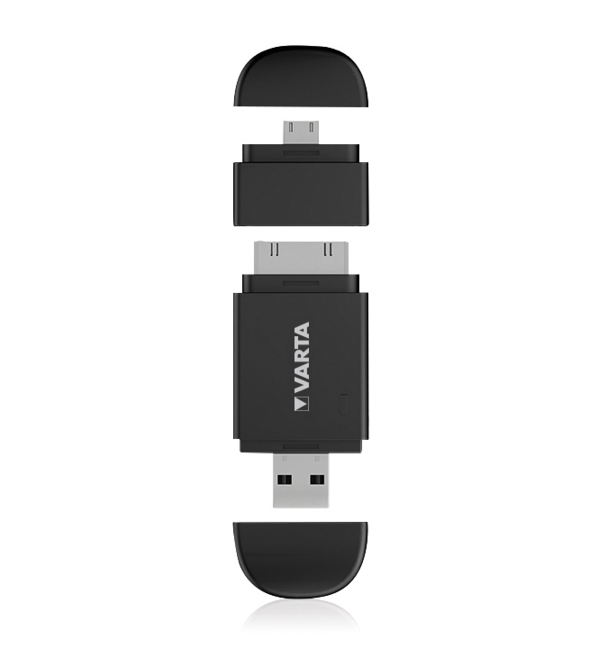 The “Phone Power” Mini Powerpack is a useful everyday companion. The small charger is only as big as a USB stick and is equipped with a practical key ring. It has sufficient charging capacity to provide a smartphone with up to 60 minutes additional talk time. As it has two plugs, it can be connected to devices with micro USB ports, as well as those with Apple 30-pin dock connectors.