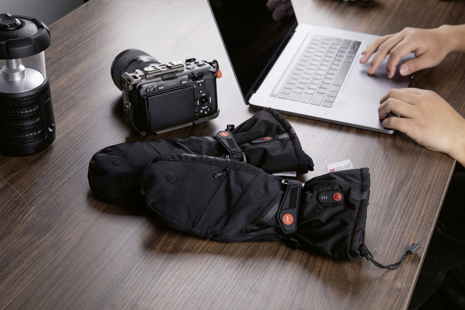 The Photography Gloves (Master) were developed for use in very cold conditions. The gloves consist of three layers. The outer layer is windproof and waterproof, covers all five fingers and can be easily flipped back. The middle layer leaves the thumb, index and middle fingers free if required, while the inner layer grants all fingers full freedom of movement. Thanks to a graphene membrane, the heat can be regulated by the user. Power is supplied via a concealed battery holder in the wrist area.