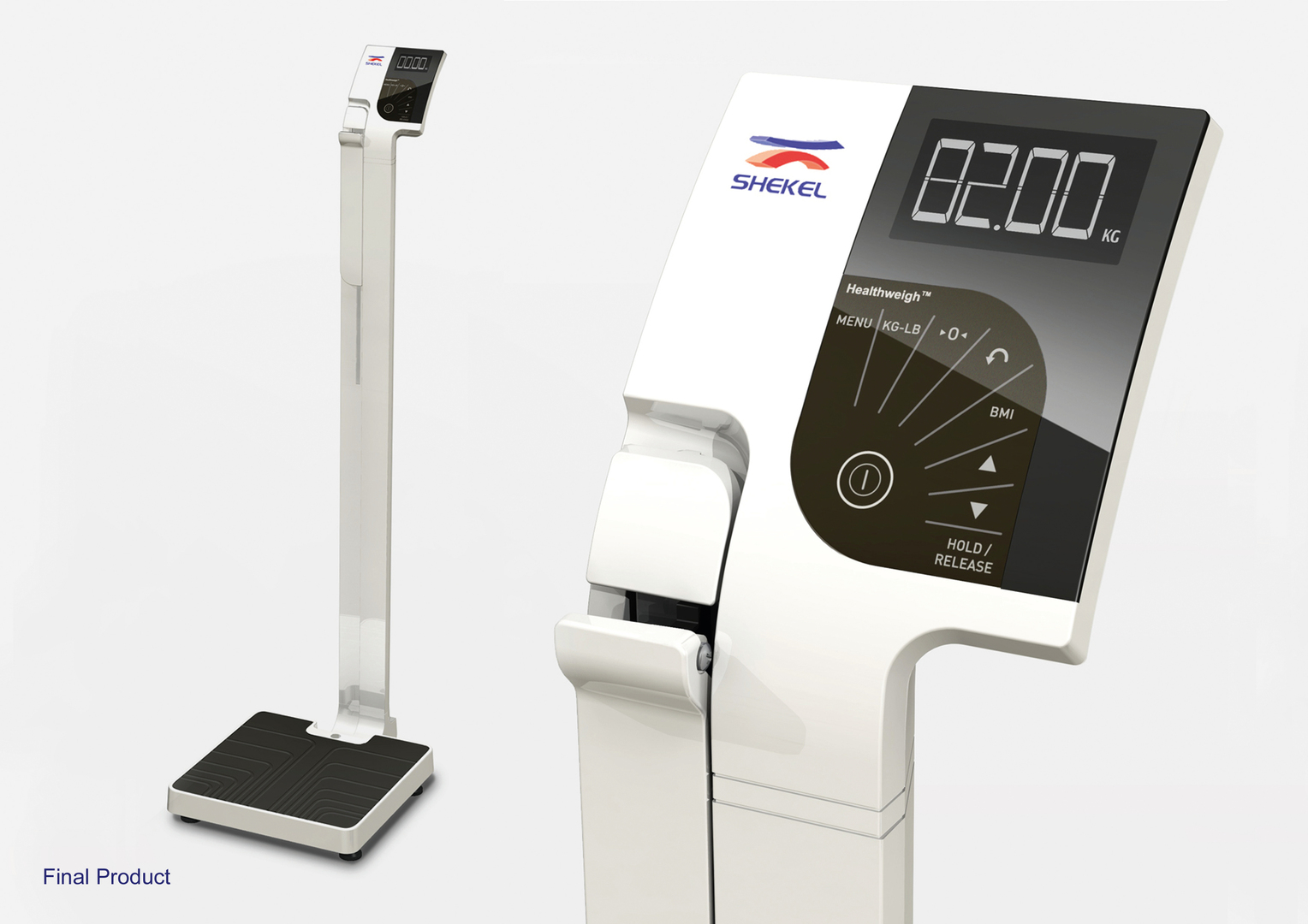 This physician scale stands out due to its easy-to-read, digital display that precisely shows body weight. An innovative feature is the integrated, retractable height meter, which accurately reads the exact body height of the patient.
