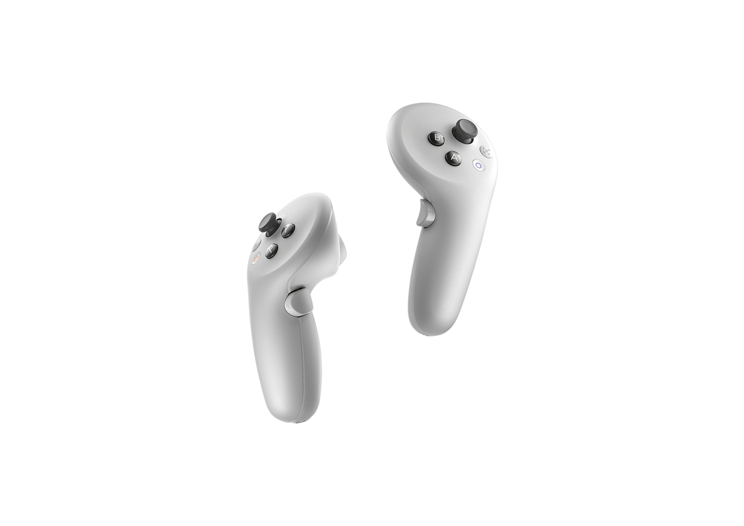 The front of the PICO4 PRO VR headset is dominated by a curved, nano-coated mirror, otherwise the design is restrained in favour of elegant simplicity. Overall, the device has become lighter compared to the predecessor model, with the weight being evenly distributed on the front and back for increased wearing comfort and stability. With the PICO4 PRO, controllers were also introduced which do without the conventional tracking light ring and are thus more compact.