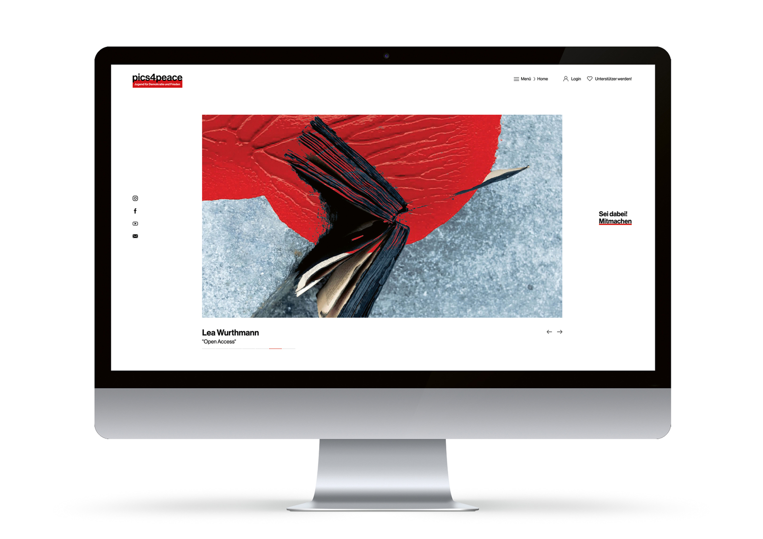 The aim of the pics4peace project is to bridge the communication gap between the older generation, currently in charge of creating the future, and the younger generation that will need to live in this future. Created as an open competition, it encourages young adults to express their feelings, problems and opinions in a playful and artful way. They can submit any form of content, such as texts, videos, graffiti, poetry, songs or pictures. The online platform offers a wide range of community features, working with eye-catching typography and spacious presentation areas in order to bring the works and respective authors clearly into focus.