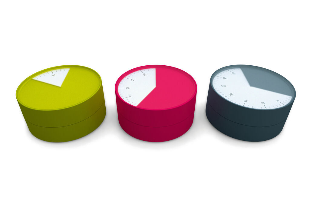 Cooking is an art in which everything depends on the correct timing: be it a dish that has to be ready “au point” at exactly the right time or pasta “al dente”, which when boiled for too long lose their firm-to-the-bite texture. Small timers are the classic standard kitchen accessory to achieve this. They ring a bell when the suggested cooking time is up. The Pie kitchen timer features a strikingly clear design with a highly surprising graphic dial and functionality. At first glance, the Pie looks like a small box which, when the top half of the unit is twisted, reveals an easy-to-read analogue dial. When the time is up, the dial retreats and is no longer visible. The Pie kitchen timer can be set for a timing period of up to one hour and features a durable clockwork mechanism inside, which requires no batteries. With its plain and self-explanatory functionality this timer embodies a highly reliable and even entertaining kitchen companion. The symbolism that the design of the timer relies on is an expression of wit and sophistication: the opening and closing movement of the dial is reminiscent of a cake being “eaten up” gradually as time passes. In the overall design concept, this aspect of closing also serves another important function, as it protects the dial from dirt when the timer is not in use. Thus the Pie 60-minute timer lends its product category a new aesthetics, turning it into a kitchen accessory which, with its form and function, makes everyday cooking a more pleasurable experience.