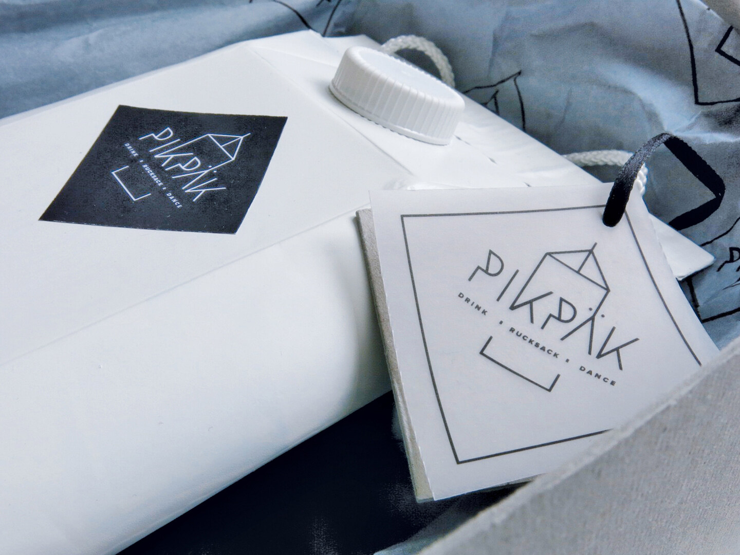 PIKPÄK is a packaging for drinks which was specially developed for use at festivals. It is designed as a tetrapack rucksack, making it easy for visitors to carry their drinks on their backs. This offers several advantages. The hands, for example, remain free and nothing can spill when walking or dancing. The packaging also reduces the chance of being drugged, since there is no need to put the drink down. The environmentally friendly rucksack can be locked and re-filled with beer, wine, cocktails or soft drinks time and again.