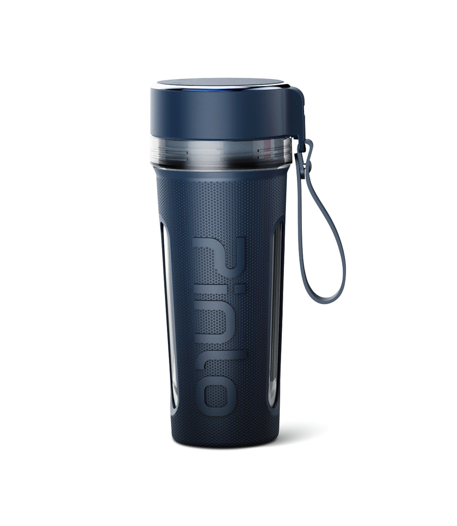 The Pinlo Portable Blender PRO is a portable blender that can also be used as a drinking vessel. For quick preparation of juices and mixed drinks, a powerful motor and blades are integrated into the lid. This lends the blender a handy and compact appearance. For convenient transport, the Pinlo Portable Blender PRO is equipped with a carrying loop and a silicone cup jacket that also reduces noise generation during the mixing process.