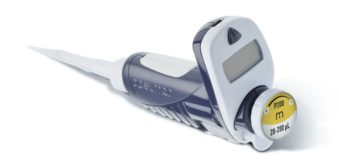 The Pipetman M is a lightweight, electronic pipette that can aspirate liquid volumes of up to 1,200 microlitres. Thanks to the motor, the aspiration and dispensing of samples is almost effortless. All pipetting functions and menu options can be selected with just two buttons. The user may conveniently switch between five different operator modes, including a repetitive mode for repeated pipetting.