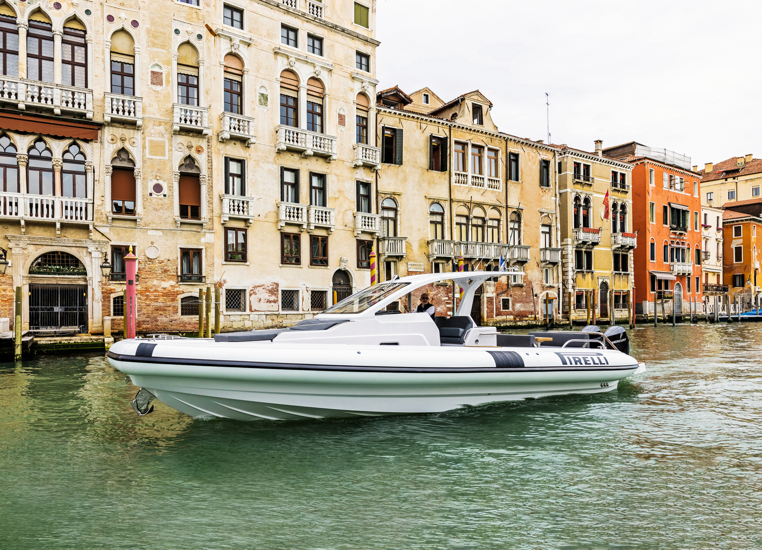 The PIRELLI 35 dinghy is part of the Tecnorib range and has the characteristics of a stylish and fast walkaround without omitting comfort. Designed by racing hull specialists, the sporty and elegant appearance of this 11-metre boat is informed by aerodynamic lines. A wide sunbathing area at the bow offers space for relaxing. The PIRELLI 35 is available with or without outboard.