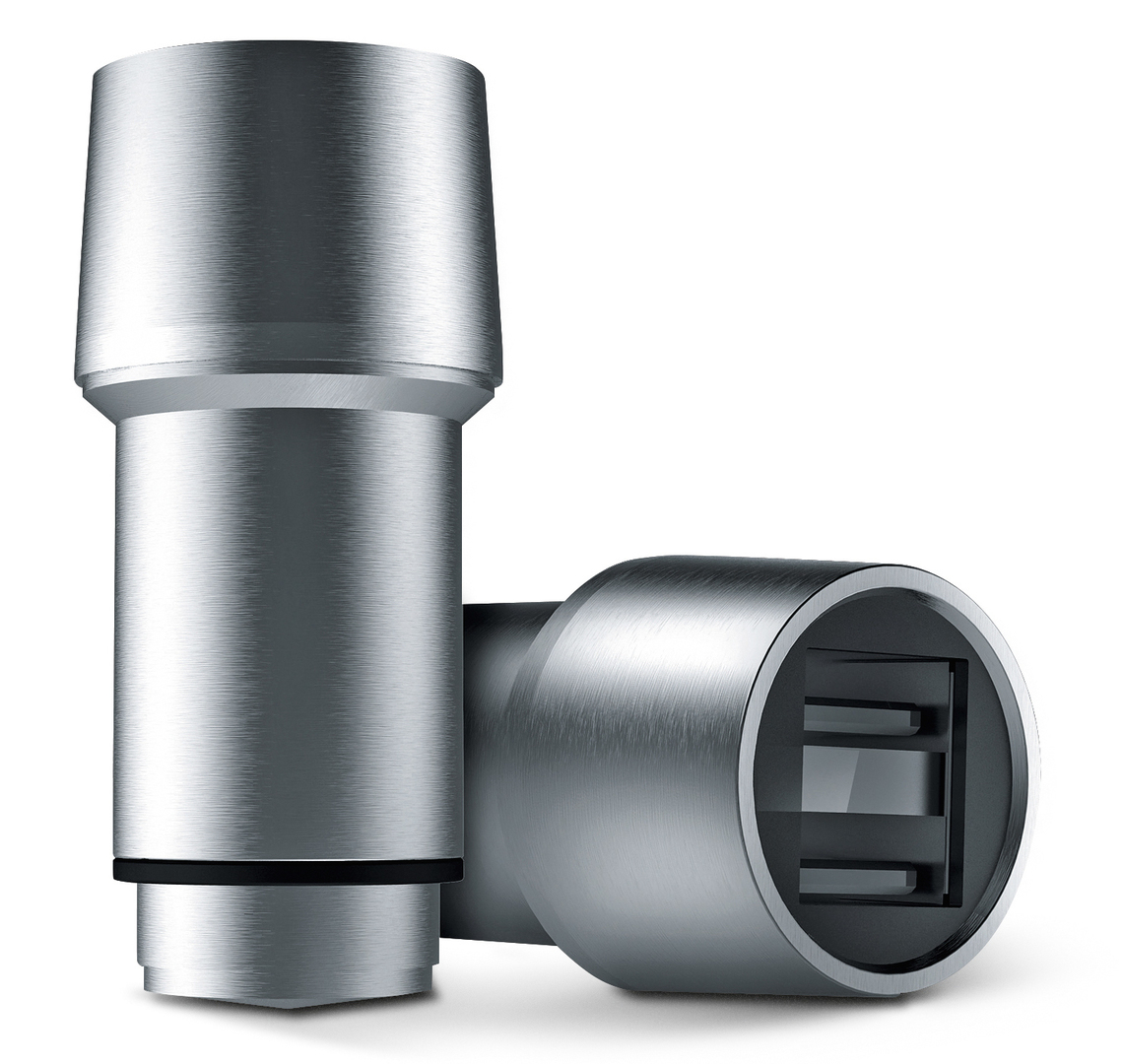This multifunctional device combines an emergency hammer with a fast car charger for iPad Air or other tablet PCs. When designing the cylindrical housing, it was possible to dispense with visible contacts and springs, resulting in a minimalist device. The stainless steel surface emphasises the purist impression and contributes to the durability of the product. An integrated LED eases its usability in the dark.