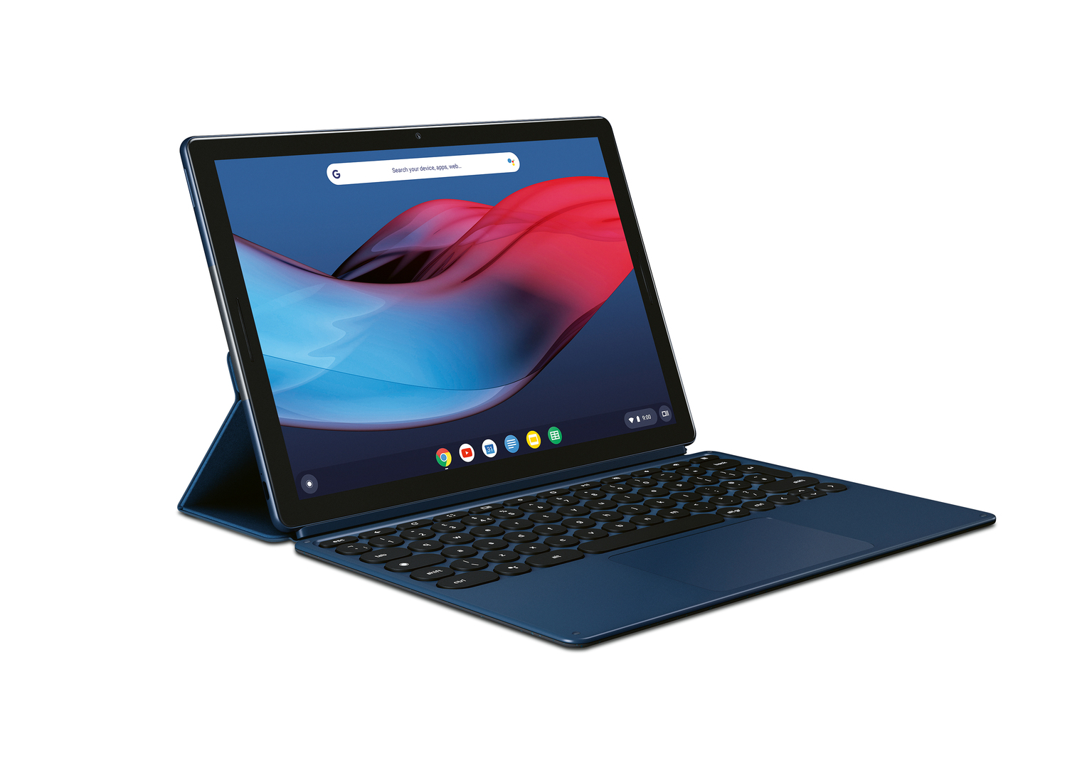 The Pixel Slate Tablet is connected to the Pixel Slate Keyboard by simply snapping it in, pairing or Bluetooth are not necessary. The back is designed in such a way that the tablet can be adjusted to any angle. Thanks to the gentle curving of all edges and corners, the unit can be easily slipped into a bag. A pleasant feel is created by matte surfaces. The round keys generate a friendly impression and are very ergonomic when typing.
