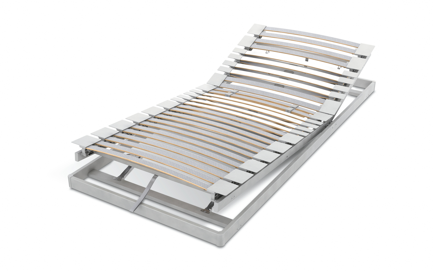 Purism meets comfort: the Platin plus slatbase is characterised by a clear stylistic idiom and a modern appearance. Thanks to an interactive triple spring system, it offers a fully automatic contour adjustment which makes it very comfortable and ergonomic. The patented system combines a high degree of spring adjustability with a strong support for the sleeping person – both when lying on the side as well as when sleeping on the back.