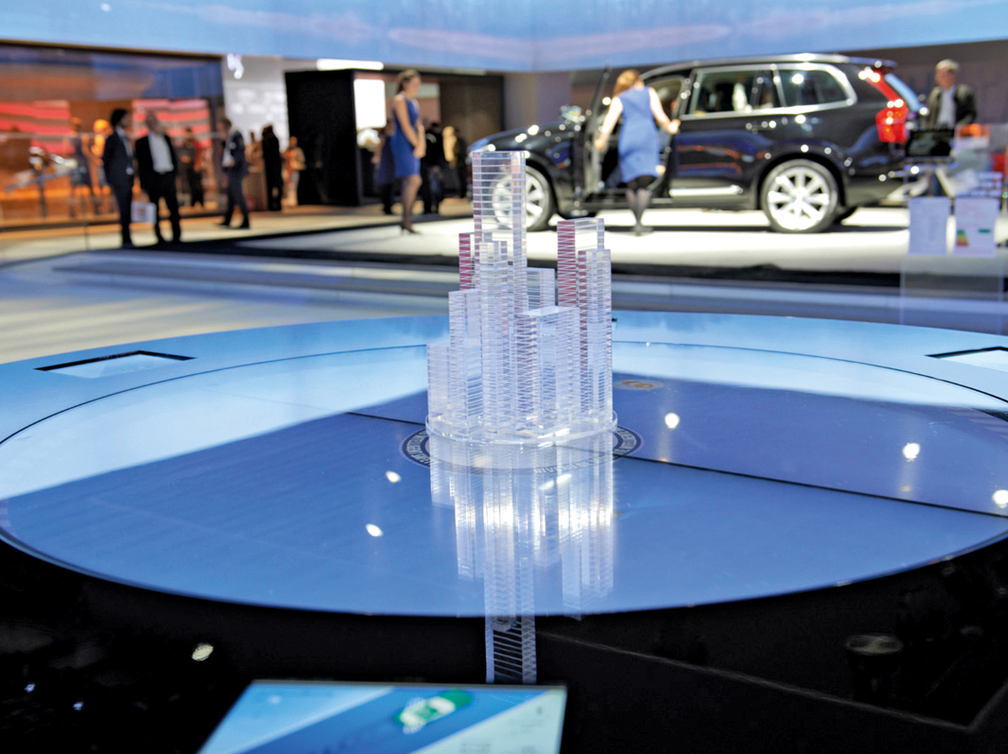 The interactive game Play IntelliSafe, presented at the Paris Motor Show in 2014, was designed to inform about Volvo’s groundbreaking safety technology in a playful and easy way. A round glass table top served as a screen as well as a game board. Using tablets, players could set Volvos into motion, which then interacted with other vehicles in different ways – depending on whether the Volvos were equipped with IntelliSafe or not. Players learnt how the safety system prevents accidents and protects people.
