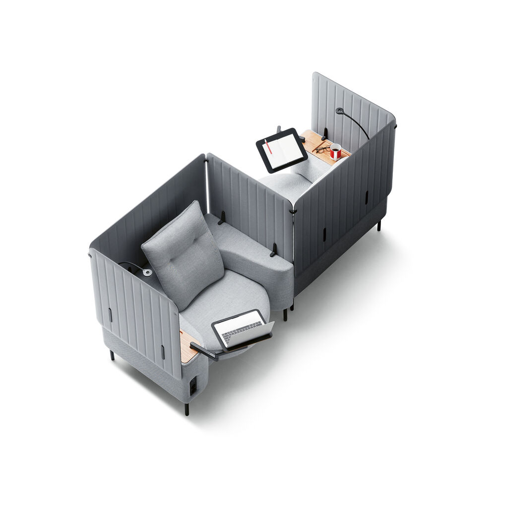 For modern office environments, PLAYWORKS enables both an individually designed workplace and creative communication between colleagues. The seat’s 30-degree swivel mechanism to the left or right and the ergonomic design of the panel in the back rest offer a high measure of flexibility and thus increase comfort as well as natural, interactive communication. The detachable screen module structures the private space and ensures the necessary concentration on work.