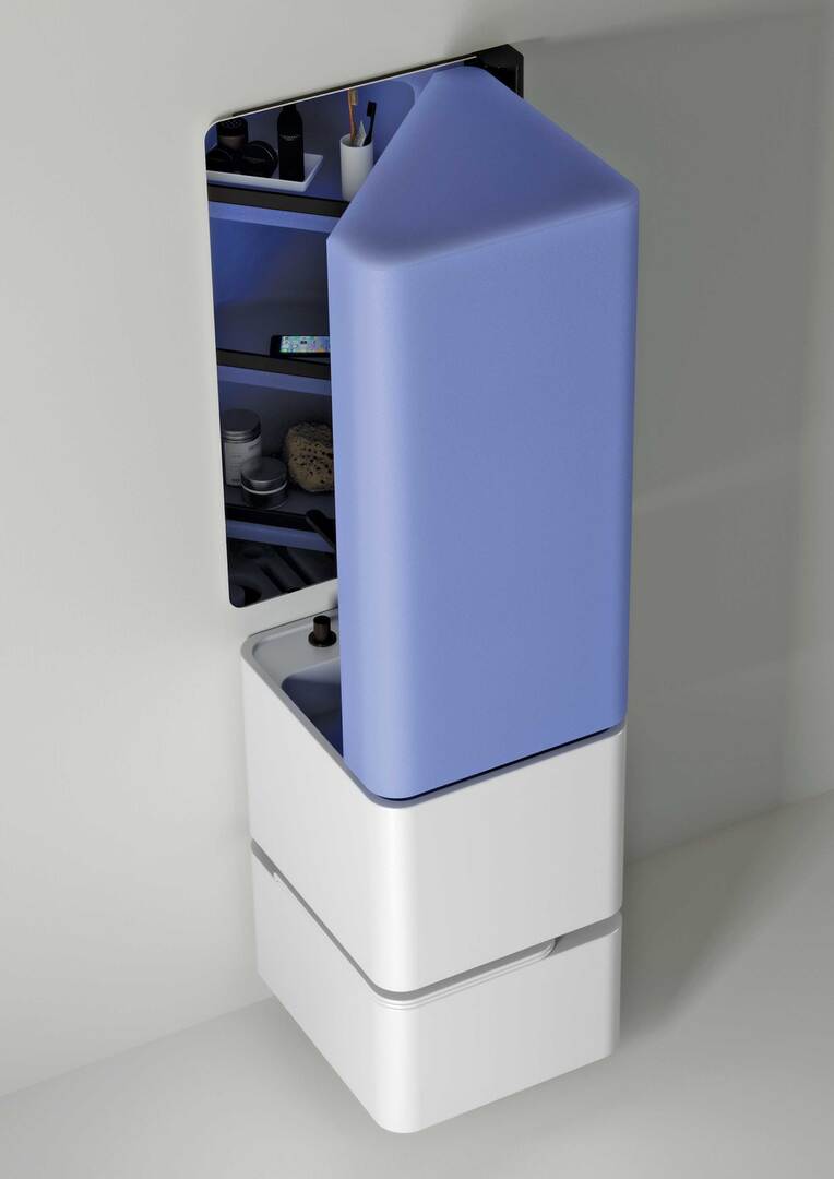 P!LL incorporates all essential bathroom functions into a small footprint. This enables it to be used in previously unexplored areas, such as residential renovations and offices, or anywhere limited by spatial constraints. All of its primary functions can be fulfilled when it is combined with a shower tray. Metamorphosis is the word that comes to mind to describe P!LL. The toilet has the option of including an electronic bidet (like an intelligent toilet). The washbasin is equipped with removable taps that facilitates toilet cleaning. The repositionable board transforms the sink into a washboard. The storage container, made by rotomoulding, is available in a wide range of colours. Red Dot Award: Design Concept | Concept | Bathroom and Hygiene