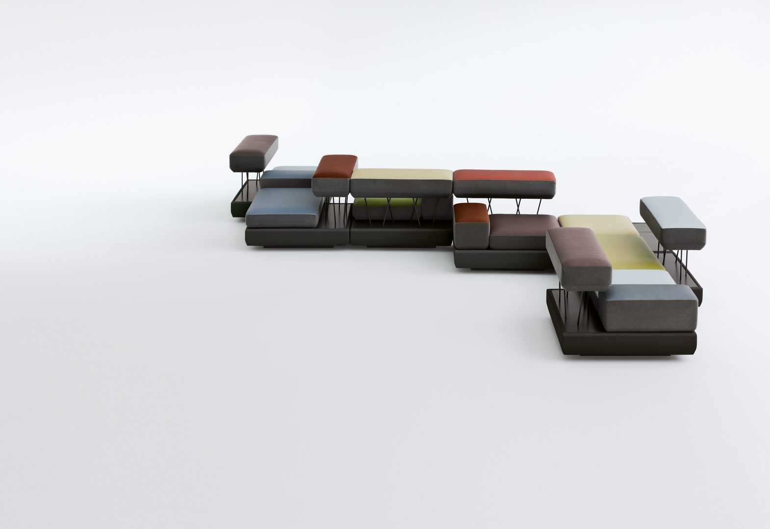 plot presents itself as an inspiring loungescape with an unconventional design that allows different configurations and uses in a variety of interiors.