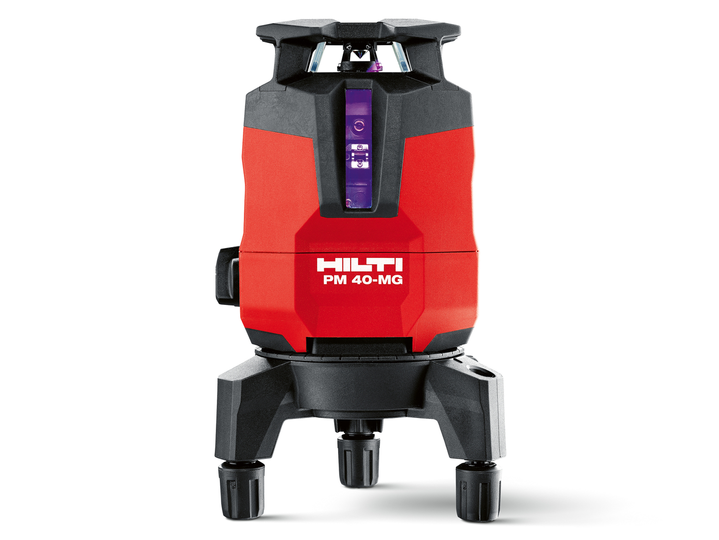 The PM 40-MG is a multiline laser used for the adjustment of walls in drywall construction as well as supply lines and cable runs. It operates with a green la-ser beam, which offers better visibility than traditional red lasers. Even in bright daylight, it is clearly visible from over 25 metres away. To guarantee durability, diodes and prisms are protected against damage and rough handling by the Metal Blade Axicon technology. The rechargeable battery is also compatible with all other 12 volt devices by the manufacturer.