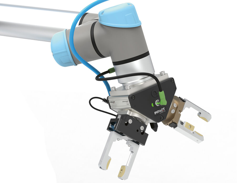 The pneumagiQ PQ90 universal pneumatic EOAT interface allows two pneumatic end-of-arm tooling units to be connected to a robot at 90 degrees to each other. Using a specially developed, innovative technology, the system is controlled via a single air inlet. A complex manifold with intersecting pipes and multiple valves has been produced using innovative manufacturing techniques and compactly housed in a reduced aluminium enclosure. The brand-independent system is connected to robots and end of arm tooling via standardised couplings. This ingenious and modular concept makes the system highly flexible and thus impressed the judges.