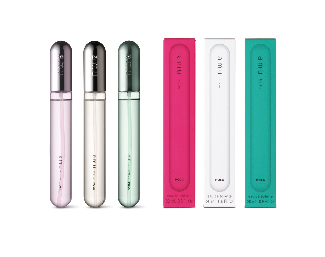 A highly consistent colour concept was developed for the packaging design of these three oil fragrances. In matching the product names “amu rouge”, “amu blanc” and “amu herbe” with colours, the fragrance packages feature the hues of red, white and green. The contour of the flacon is already suggested on the cardboard box, and its rounded edges lend the atomiser an elegant appeal. The embossing of the product name on the cap is both a visual highlight and a functional feature to prevent the tubular bottles from rolling.