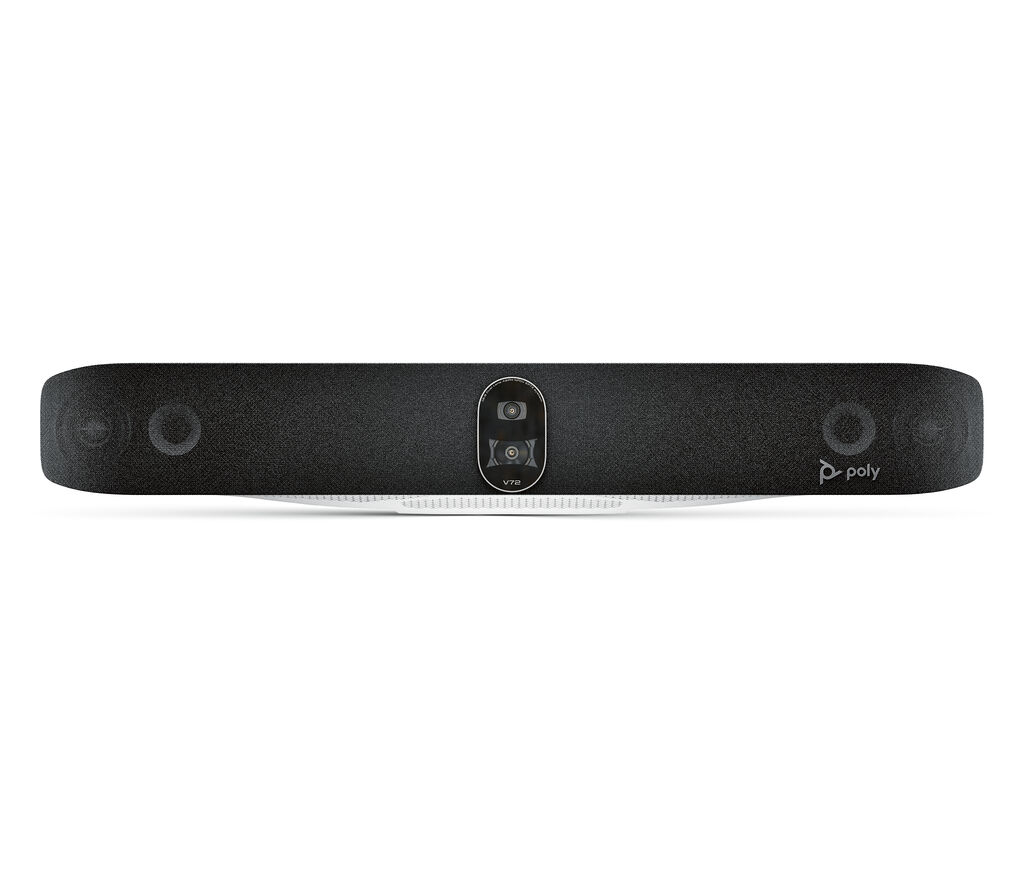 Poly Studio V72 is a conference device for large conference rooms with integrated camera, speakers and microphones. The AI-based audio and video technology filters out background noise and focuses on the participants of the call. Two 20 MP UHD cameras and Poly DirectorAI technology optimise the image display. The system is scalable and can be expanded with additional Poly peripheral devices. As video and audio modules are integrated in a single casing, unnecessary equipment costs and installation effort are avoided.